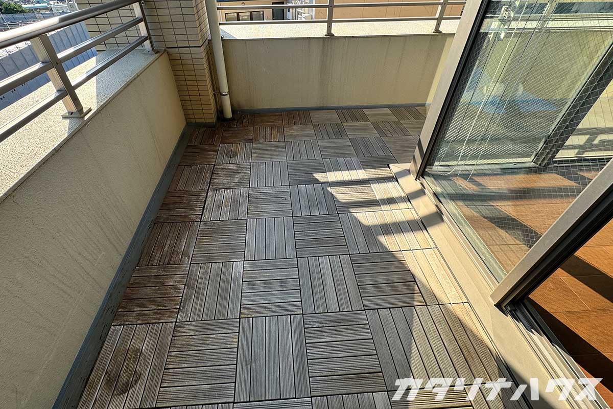 ベランダに敷き詰めていたウッドパネルも撤去します