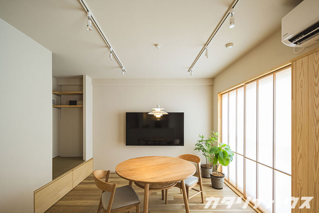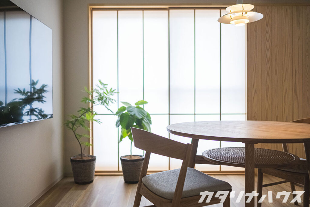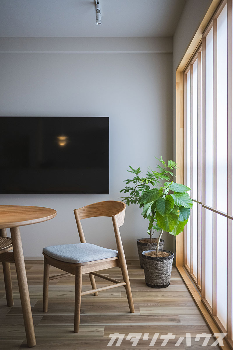 カーテンやブラインドではなく、あえて障子を採用することで生まれる温かさ。